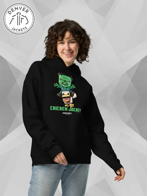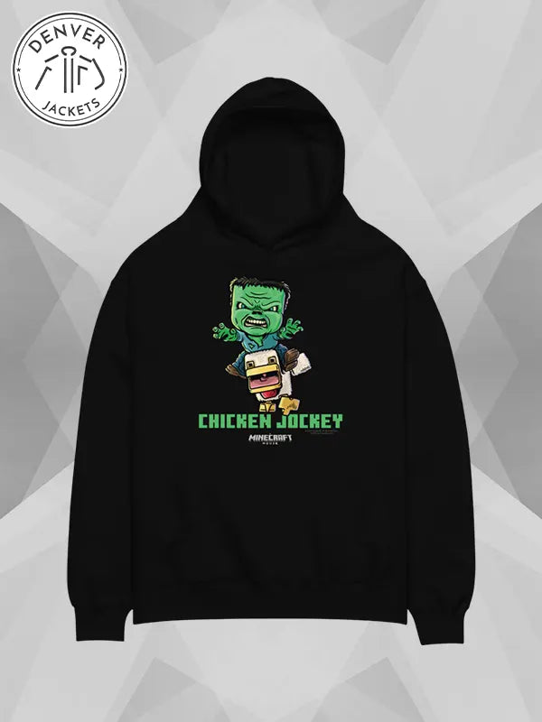 A Minecraft Chicken Jockey Black Hoodie – A Unisex oversized hoodie is a trendy sweatshirt that we have been all waiting for. Why all this anticipation? Because it takes our gaming passion to the next level as it combines crafts with couture in a fusion of elegance. Before you say ‘Chicken Jockey’ again, make sure to suit yourself up in this relaxing hoodie that The Denver Jackets Store has been working on for you.