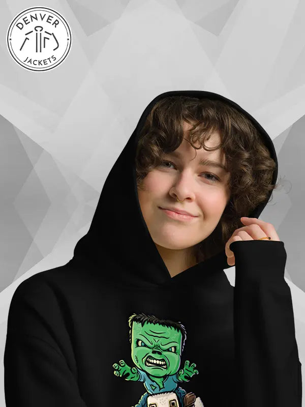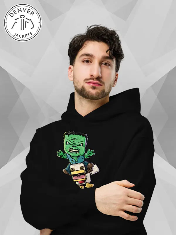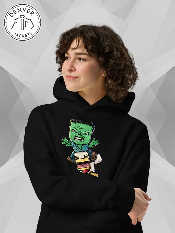 Gamers unite! Your prayer has been answered. At The Denver Jackets Store, you can now shop online for the new Unisex oversized Chicken Jockey Minecraft Hoodie Black and give yourself a glow-up like Minecraft Steve. Get it now and have it on for whenever you feel like minecraft-ing.