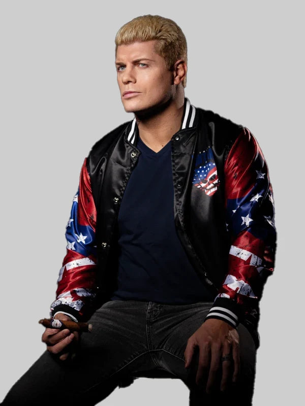 Why go for quiet luxury when you can go for vocal vogue? The AEW Double or Nothing Cody Rhodes Bomber Jacket is a proud and emblematic outerwear that has an irresistible charm. You can choose from a variety of sizes or go with a customizable option.