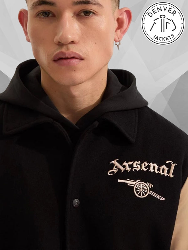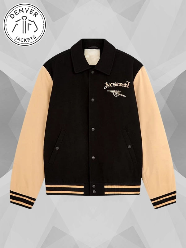 Re-Creation | Arsenal North London Classic Black Varsity Bomber Jacket