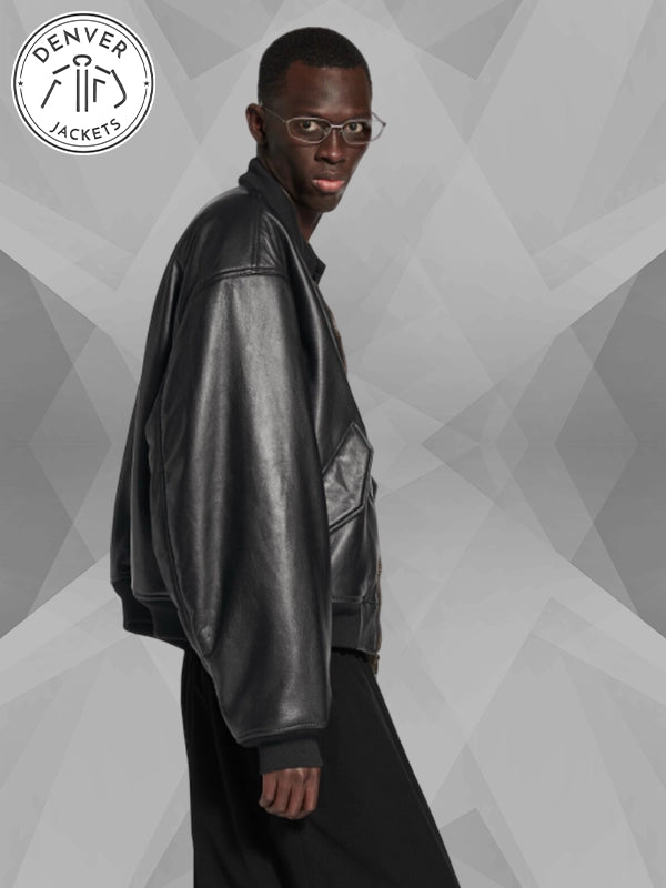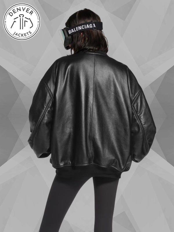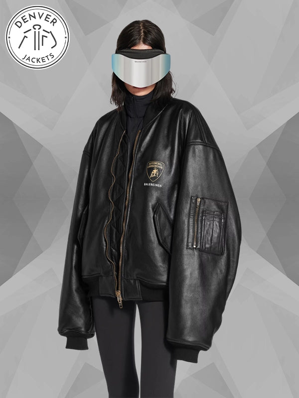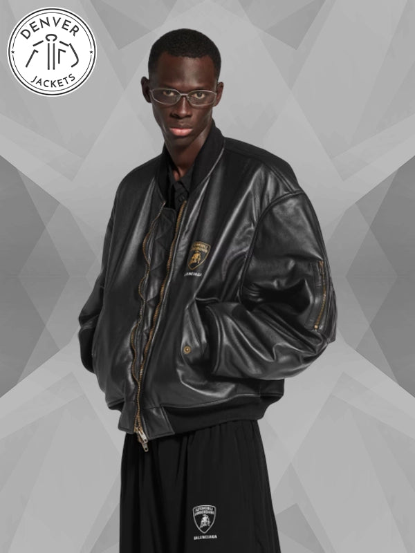 Buy the Lamborghini x Balenciaga Black Leather Oversized Bomber Jacket now from The Denver Jackets Store.