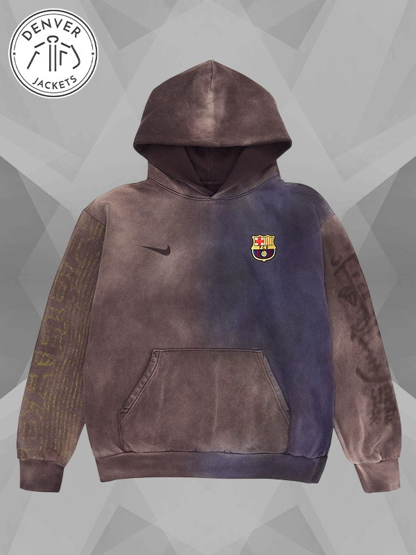 Flair? Unmistakable. All the real ones are clinging to the Spring/Summer 25 special CJ x NIKE x FCB split-dye crest hoodie. The party is where you are spotted in the heavy-wash colorway with the split-dry spray effect of this iconic wear. Get up and get yours now from The Denver Jackets Store.