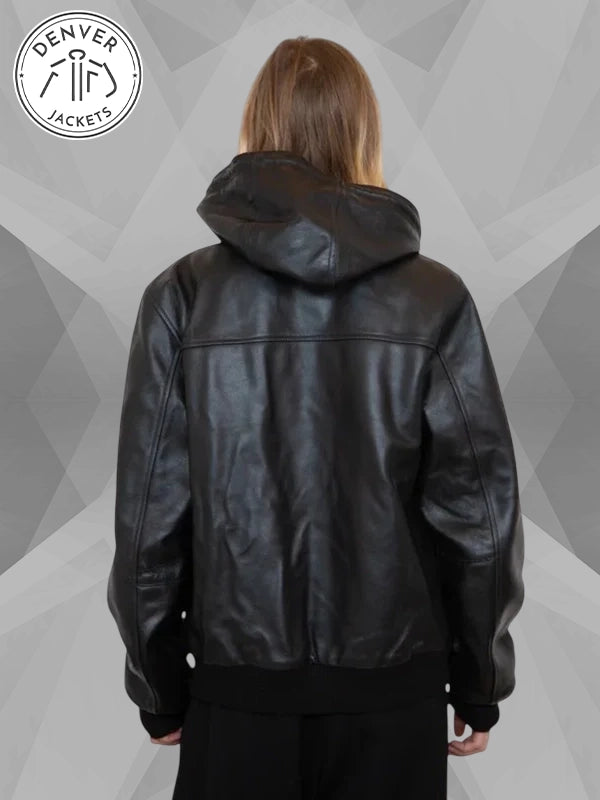 Made To Order – Re-Creation | Men’s Carhartt WIP Black Leather Jacket | Women’s Carhartt Black Leather Hooded Bomber Jacket