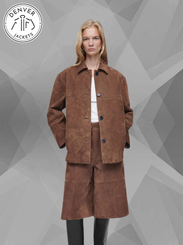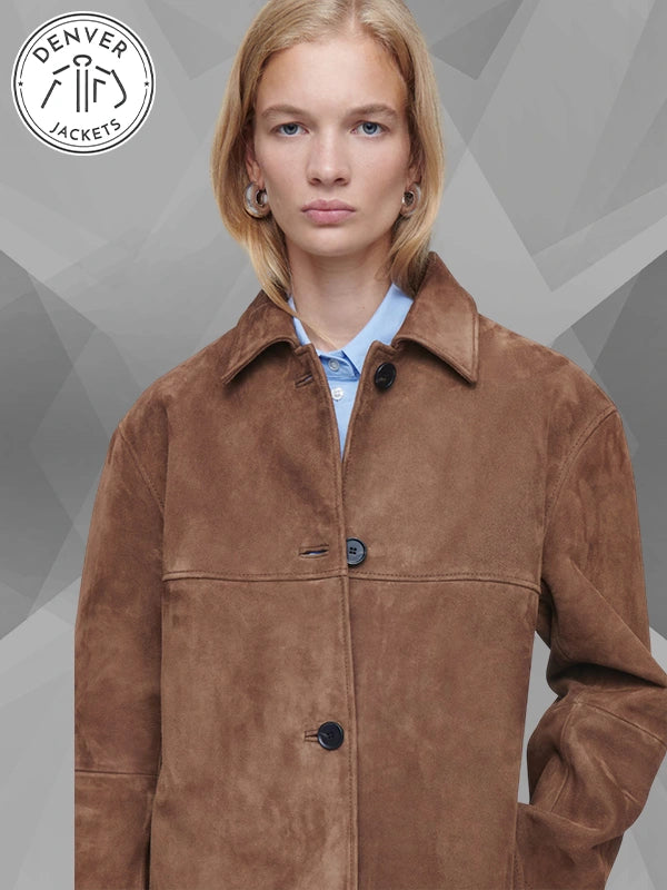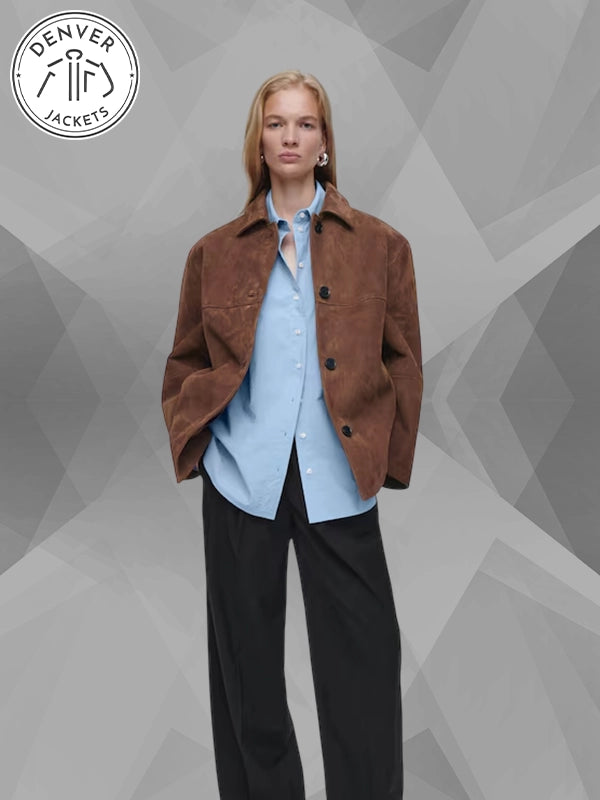 Ready for one of the best women’s suede leather jackets to wrap around your wardrobe? Become well put-together with our COS Suede Jacket – Collared Suede Jacket. It is the foundation stone for women who wish to age like fine wine and can not compromise on their grooming. For you, the Denver Jackets Store is bringing this leather jacket in a tailored fitting.