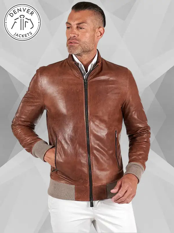 Be the first to review “D’arienzo Tan Leather Bomber Jacket”