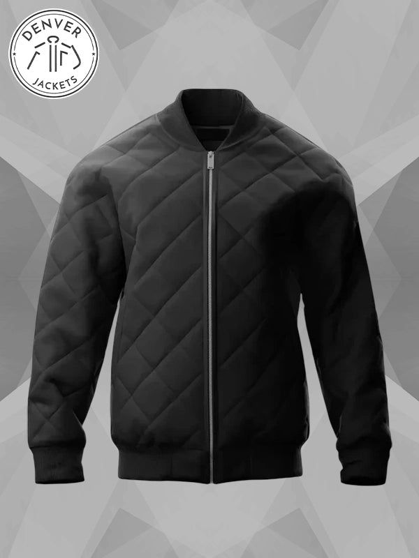 Re-Created | David Alan Black Quilted Bomber Jacket