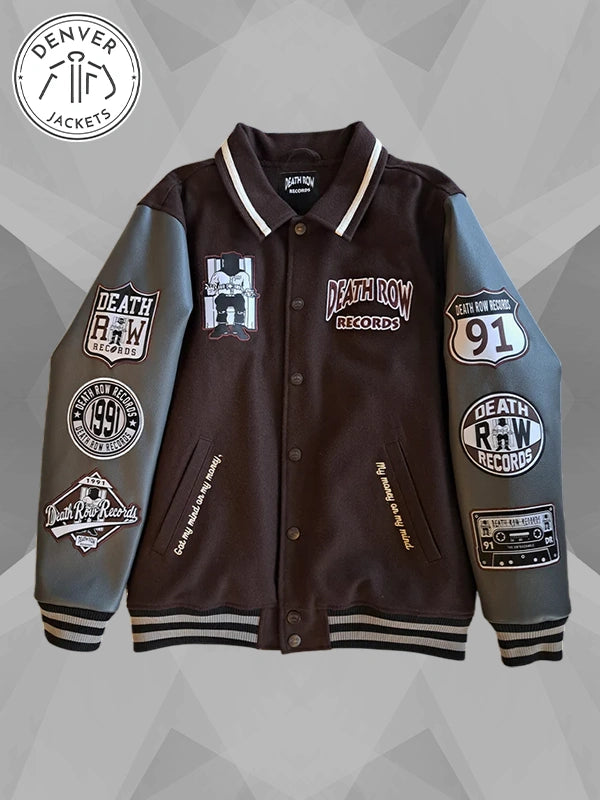 Re-Creation | Snoop Dogg Death Row Records Varsity Jacket Patched In Black & Brown