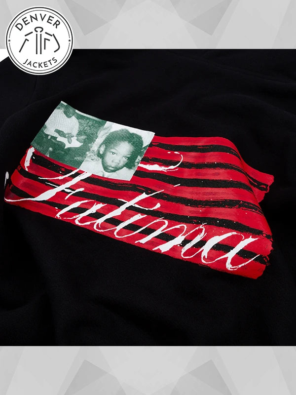 We are addicted to their hoodie sweatshirt, and so are you gonna be once you exchange your greetings with it. The Denim Tears X Gabriel Moses Black Hoodie has a super-smooth surface that is decorated with a retro motif on the back, an emblematic imprint on the front, and contrasting drawstrings that make it a distinguished piece.