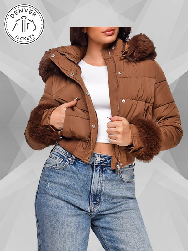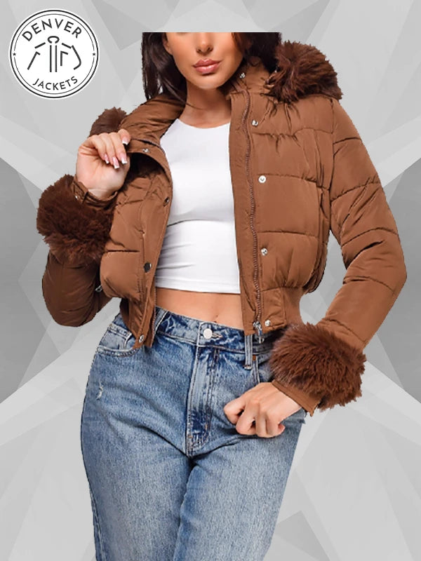 Liz Caribel Sierra Dope Thief Season 01 Sherry Brown Fur Trim Puffer Jacket