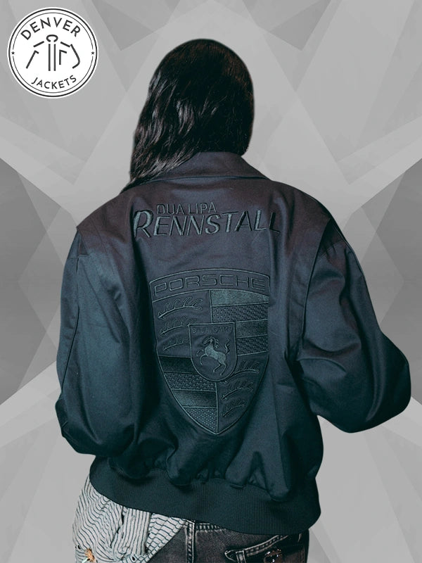 The fandom is intense, and the game is on. Get ready to turn heads to the finish line with the one and only Dua Lipa Reinstall Porsche Black Bomber Jacket; it is your loyalty check to the iconic Albanian singer Dua Lipa as much as it is a foothold in the Formula 1 fandom. Shop it now at The Denver Jackets Store.