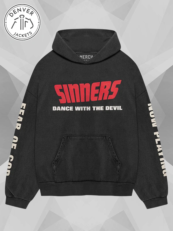 Featuring hand-painted graphics of Ryan Coogler’s upcoming horror film Sinners, this hoodie does not miss a single chance to celebrate the cinematic masterpiece that has the legend Michael B. Jordan starred in an American horror film. Details such as hand-printed ‘SINNERS,’ ‘DANCE WITH THE DEVIL’ at the front and ‘FEAR OF GOD’ and ‘NOW PLAYING’ a real look-magnetizer.