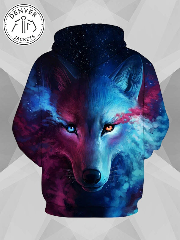 Okay, cool people. It is time to unpack a new look in the game, and what better way than to go shopping? However, with so many sweatshirts and jackets clogged into the aisle, one would feel estranged by overwhelming choices. So, if you want a look that is unique and does not mind a variety of must-have features, then say hello to the Galaxy Hoodie Wolf, a state-of-the-art hoodie that has color vibrancy and flashy looks.