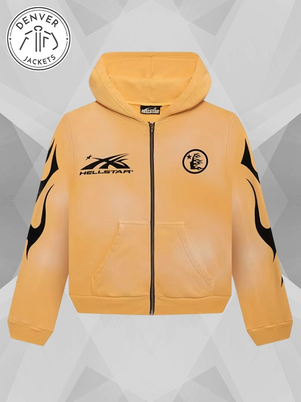 After a rigorous road test, we have come to the conclusion that the Hellstar Sports Yellow Zip-Up Hoodie in fleece is a practical and stylish article to shell over an outfit. Turn this purchase into an investment by getting this hoodie from The Denver Jackets Store. Contact us for online availability of your most anticipated staples that you feel like styling with this year, season, month, week and day.