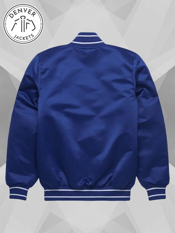 Slip pockets are added, not just merely for style but also for practicality. The interior has a little surprise in the form of a patch that reads “The Blue Crew,” a reference to the brand ambassador of the Los Angeles Dodgers. Real, rugged and regular fit. Make yourself game-ready with the HOMAGE Starter Dodgers Blue Satin Bomber Jacket. Order now at Denver Jackets.