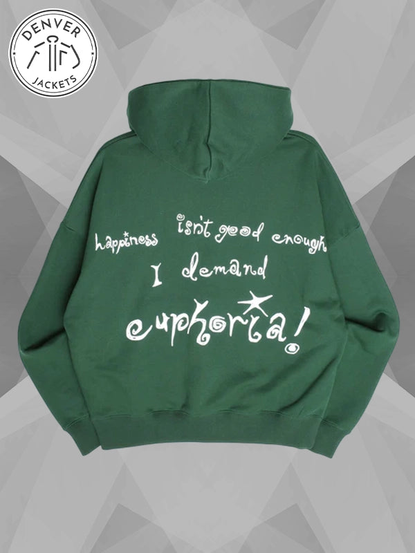 It’s for the days that feel off, for late nights when the world feels a little sideways, or mornings when a hoodie is the only thing that makes sense. The Euphoria Green Jungles Jungles Hoodie slips into daily wear with ease, but it’s not forgettable. Throw it on for a coffee run, a gallery walk, a live set, or a city loop. It plays well with chaos — in mood or in outfit.