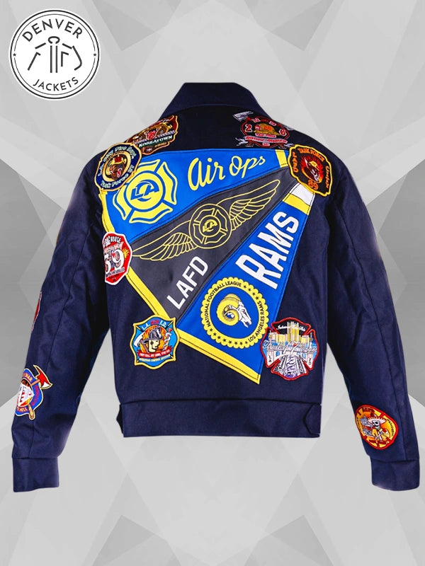 The Los Angeles Rams Los Angeles Fire Department Jacket Blue | LAFD Jacket is a work of art and dedication. It is all thanks to ‘kurtwearshats’ collaborating with the LA Rams to bring this championship-worthy jacket into the mainstream world of sports.