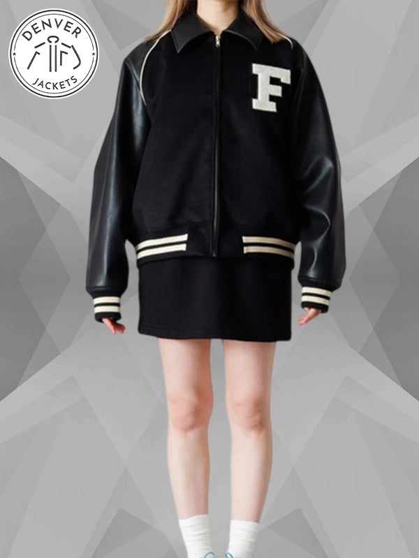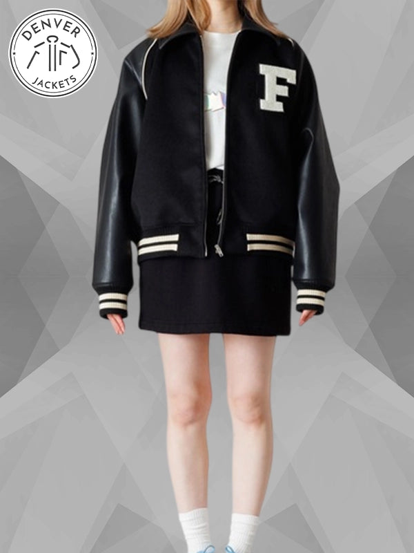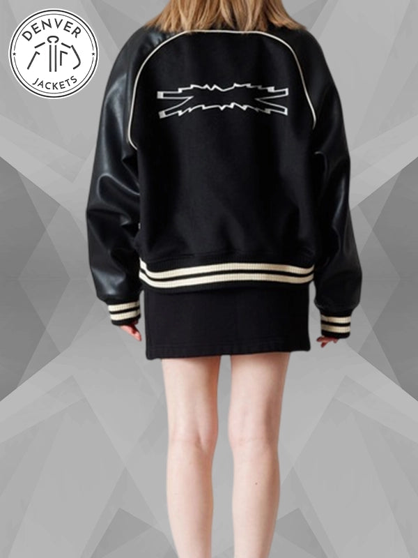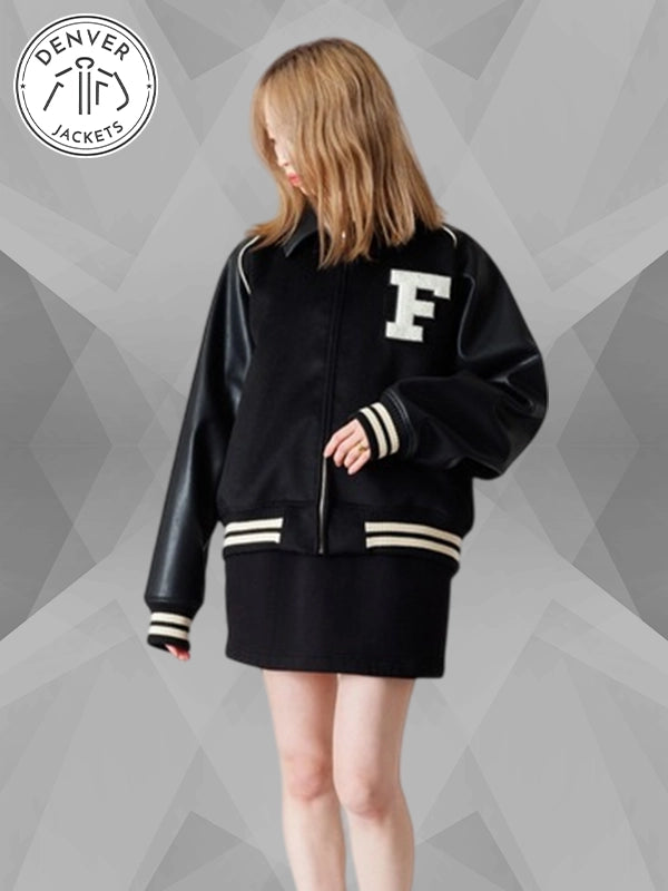 Re-Creation | LE SSERAFIM × ZOZOTOWN BLOUSON | Black Varsity Bomber Jacket