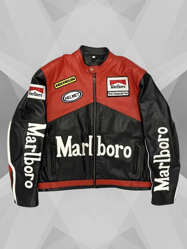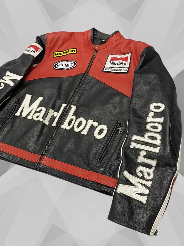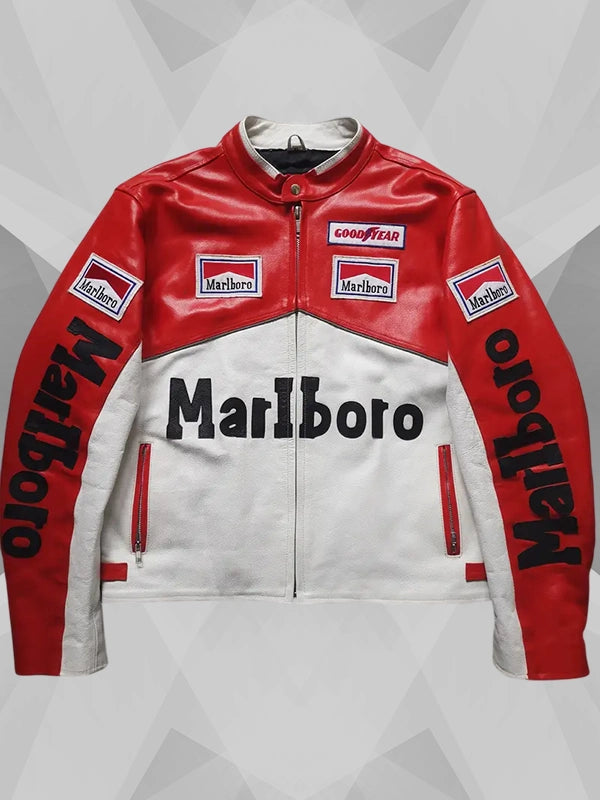 Listed at Denver Jackets, you can finally have a tailored fit to rely on for the rest of the season and the next one. Be sure to order the Marlboro Red and White Leather Jacket now!