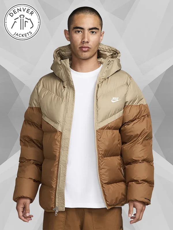 NIKE PrimaLoft Windrunner Hooded Puffer Jacket – Khaki is a storm-fit hooded puffer jacket that is designed for ambitious runners like you and me. Thank you for shopping at The Denver Jackets store.