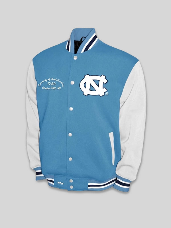 Re-Creation – North Carolina Tar Heels Franchise Club Fleece Varsity Full-Snap Carolina Blue Jacket