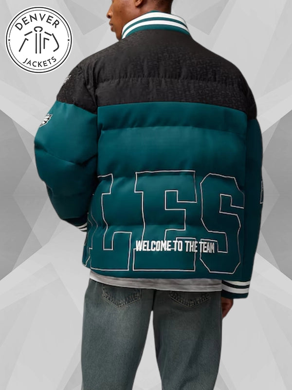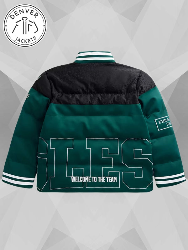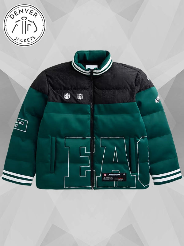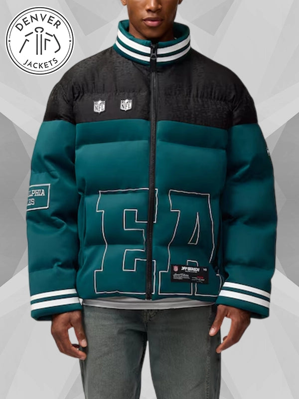 The Green Philadelphia Eagles Off Season Puffer Jacket in Midnight Green/Black has a massive following from the fans and has quite a voguish reputation in the vogue game. Grab yours from Denver Jackets.
