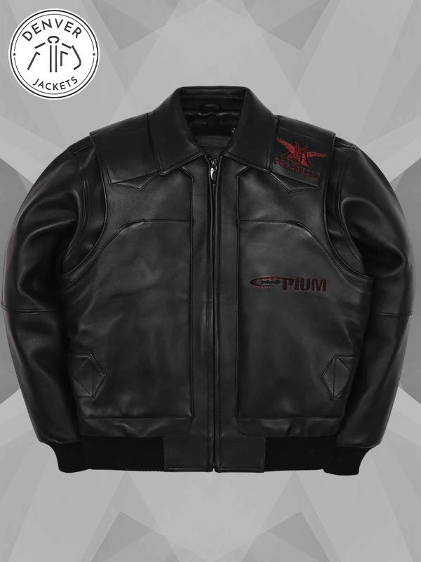 Live the life of a superstar with our Pelle Pelle x Opium Immortal Rodeo Black Leather Bomber Jacket. Get it now from The Denver Jackets Store.