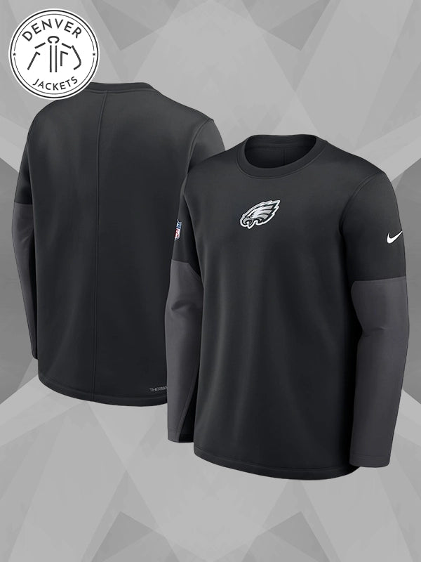Re-Creation | Philadelphia Eagles Scripted To Win Sideline Coach Men’s Nike Therma-FIT NFL Long-Sleeve T-Shirt, Unisex Black Crewneck Sweatshirt