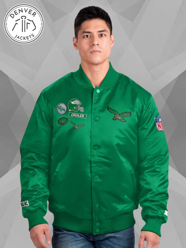 Re-Creation | Starter Men’s Philadelphia Eagles Kelly Green Exclusive Satin Full-Snap Varsity Bomber Jacket