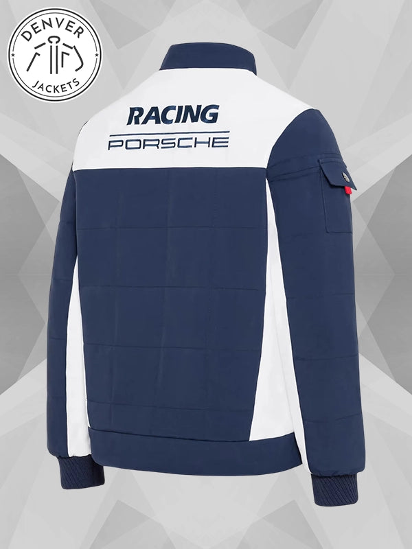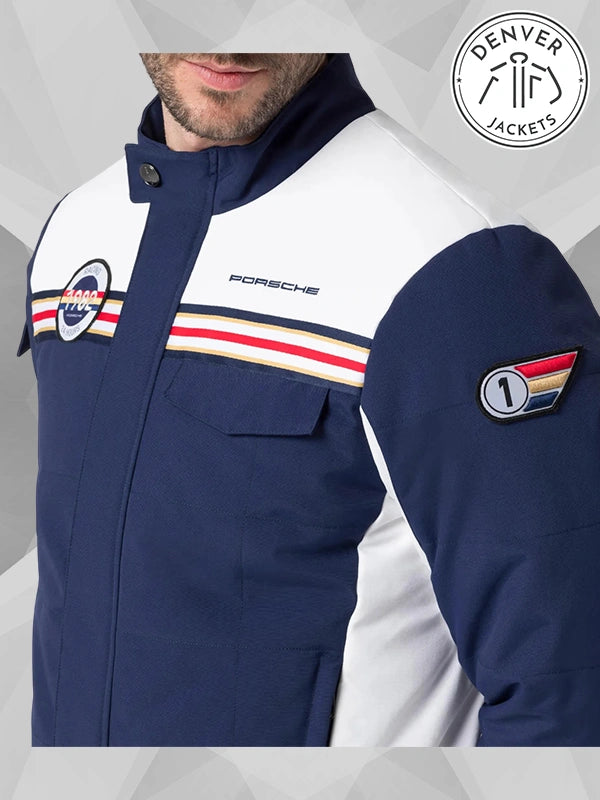 Similarly, just like the statement had exceptional downforce and stability, the outerwear stands stable, offering impenetrable warmth with no excuse for cold to ruin your day. Challenging tracks, what are they to Porsche Blue Racing Jacket? It fears no climate and no terrain.