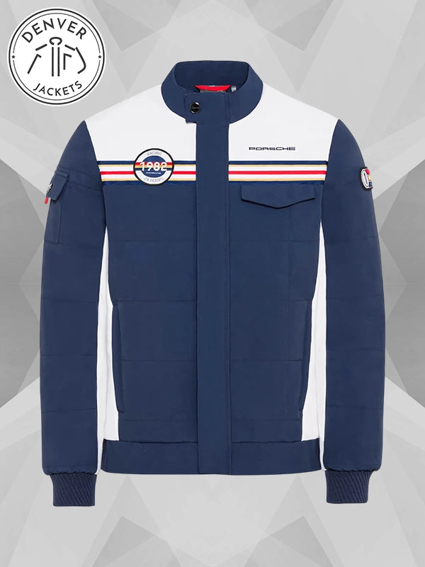 Go zero to hero in no time with the Lightly Padded Men’s F1 Porsche Blue Racing Jacket in blue that we have in store for you. Order it now at The Denver Jackets store