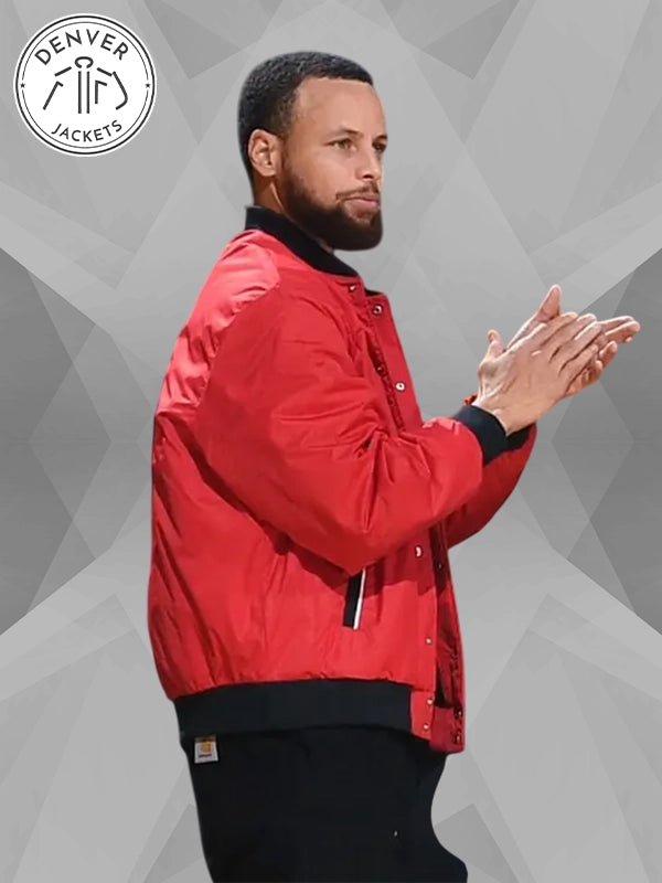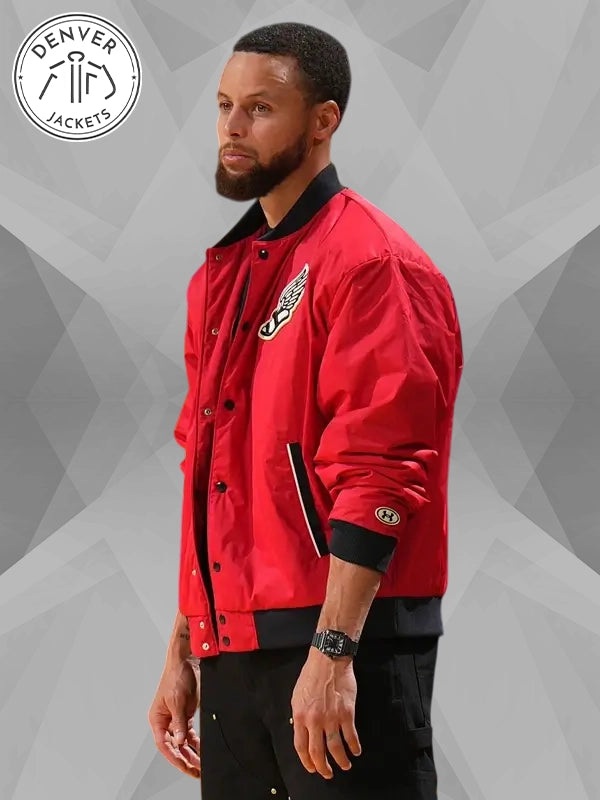 Calling all Golden State Warrior fans. Look out for an iconic UA varsity bomber jacket that has got favor and flavor. Men’s Steph Curry Red Jacket is no bulk, just warmth. It is like a no-bos solution for all authentic fans who want to get a full-on experience of enjoying a championship game of Golden State Warriors. Get ready to place an order for this premium purchase at The Denver Jackets Store and dive head-first into action.