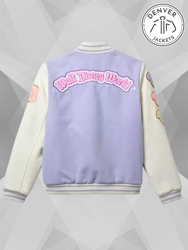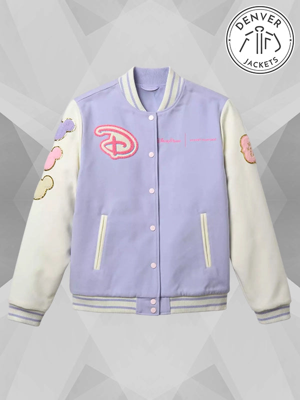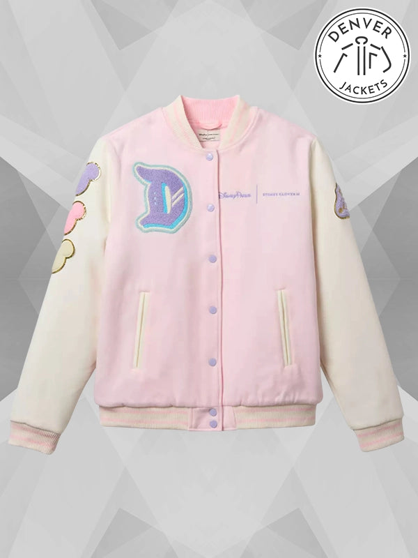 Are we going to Disneyland? Close enough. It’s more like Disneyland is coming to the university. So, get ready to hit fresh on campus with the Stoney Clover Disney Varsity Jacket pink/lavender. Order now at The Denver Jackets store.