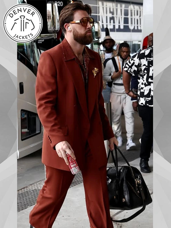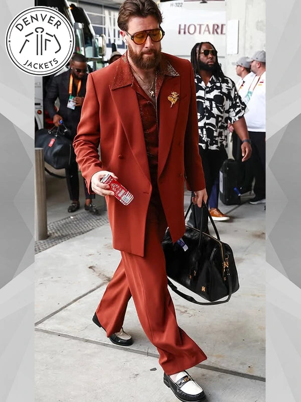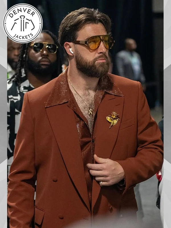 Philadelphia Eagles vs Kansas City Chiefs Super Bowl LIX Travis Kelce Coat Brown