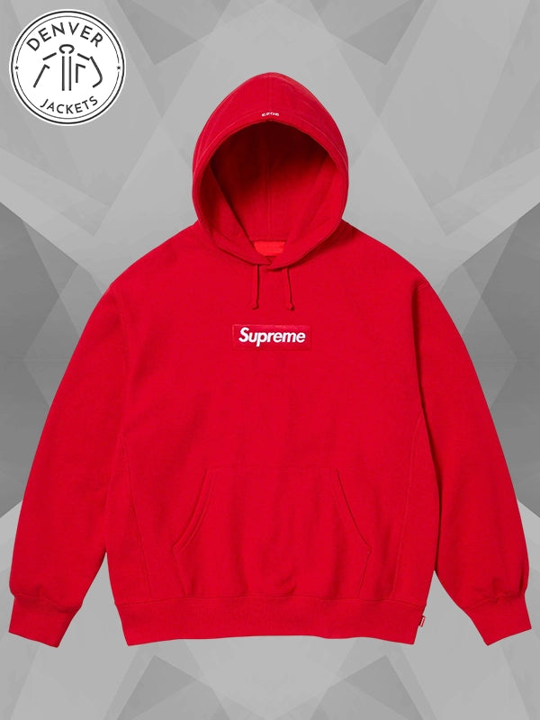 For all your hustle days and side quests, reach the wardrobe for the Supreme Red Box logo Hoodie Sweatshirt and reign supreme. Right about now, you can place an order for it at The Denver Jackets Store. We are the ultimate stop for all the hot sales and purchase-worthy pieces that you can not find elsewhere.
