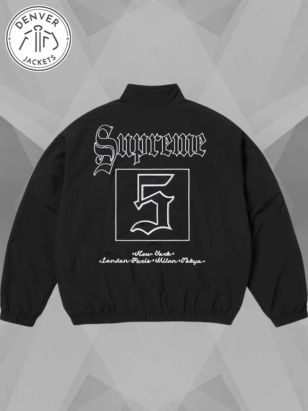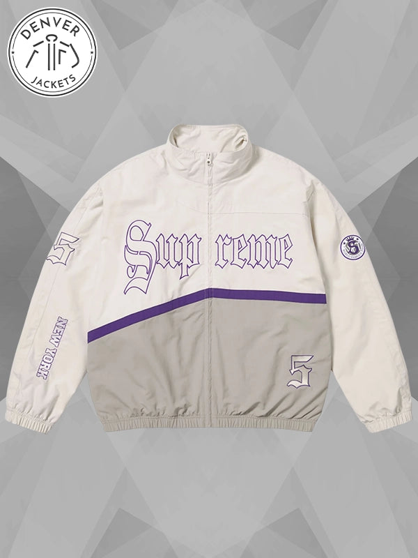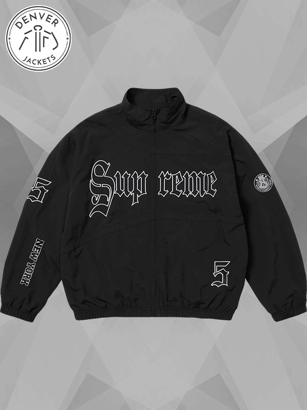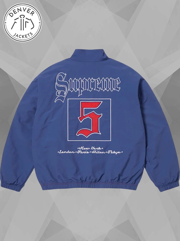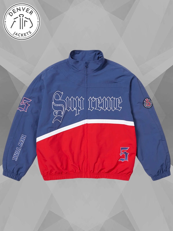 We love the Supreme Old English Track Jacket Blue and so does everybody else. Pause for a second and get to know it a bit better. Get what you need, and you need this track jacket in your life. Order now from The Denver Jackets Store.