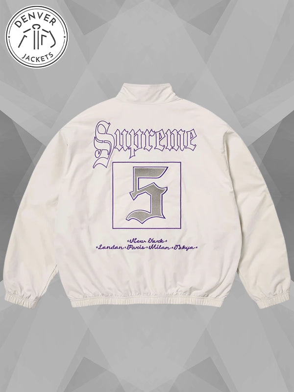 Say what you wanna say, but the Supreme Old English Jacket White isn’t gonna stay for nothing. You know the saying: time and tide don’t hold back for anything. So, take heed and get yourself what you need. Order now from The Denver Jackets Store. Did you miss its sale? No love lost. Scroll down to see what you are missing out on. Keep digging for mad discounts and hard-to-miss deals that only happen at our store.