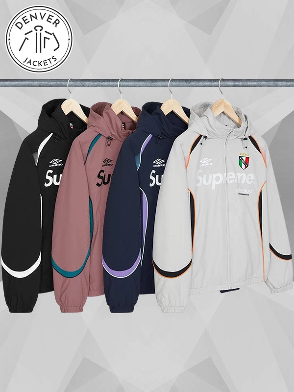 The wait is over. Shop the Supreme x Umbro Jacket Black dusty plum now at The Denver Jackets store.